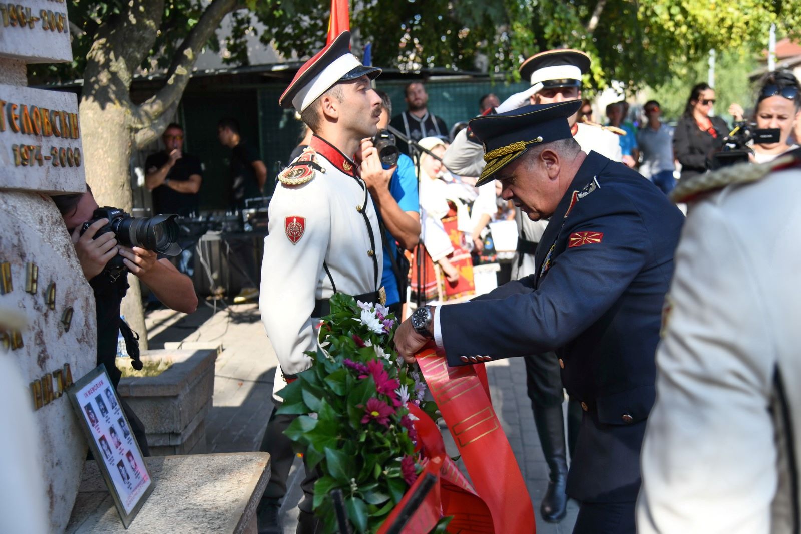 Претходно делегација од Генералштабот на Армијата положи цвеќе пред спомен обележје на паднатиот бранител Томислав Настевски во Општина Ѓорче Петров