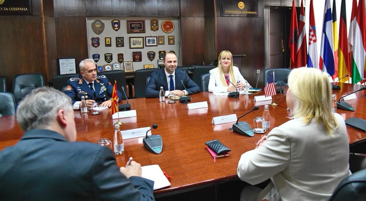 Благодарност за досегашната континуирана поддршка од нашиот стратешки партнер Соединетите Американски Држави за развој на нашата земја особено за развој на одбранбените капацитети, изрази министерот Мисајловски на денешната средба со амбасадорката на САД, Анџела Агелер, новото одбранбено аташе полковник Даниел Сквајерс и потполковник Шон Руфоло, шефот на Канцеларијата за одбранбена соработка, која се реализираше во Министерството за одбрана.
